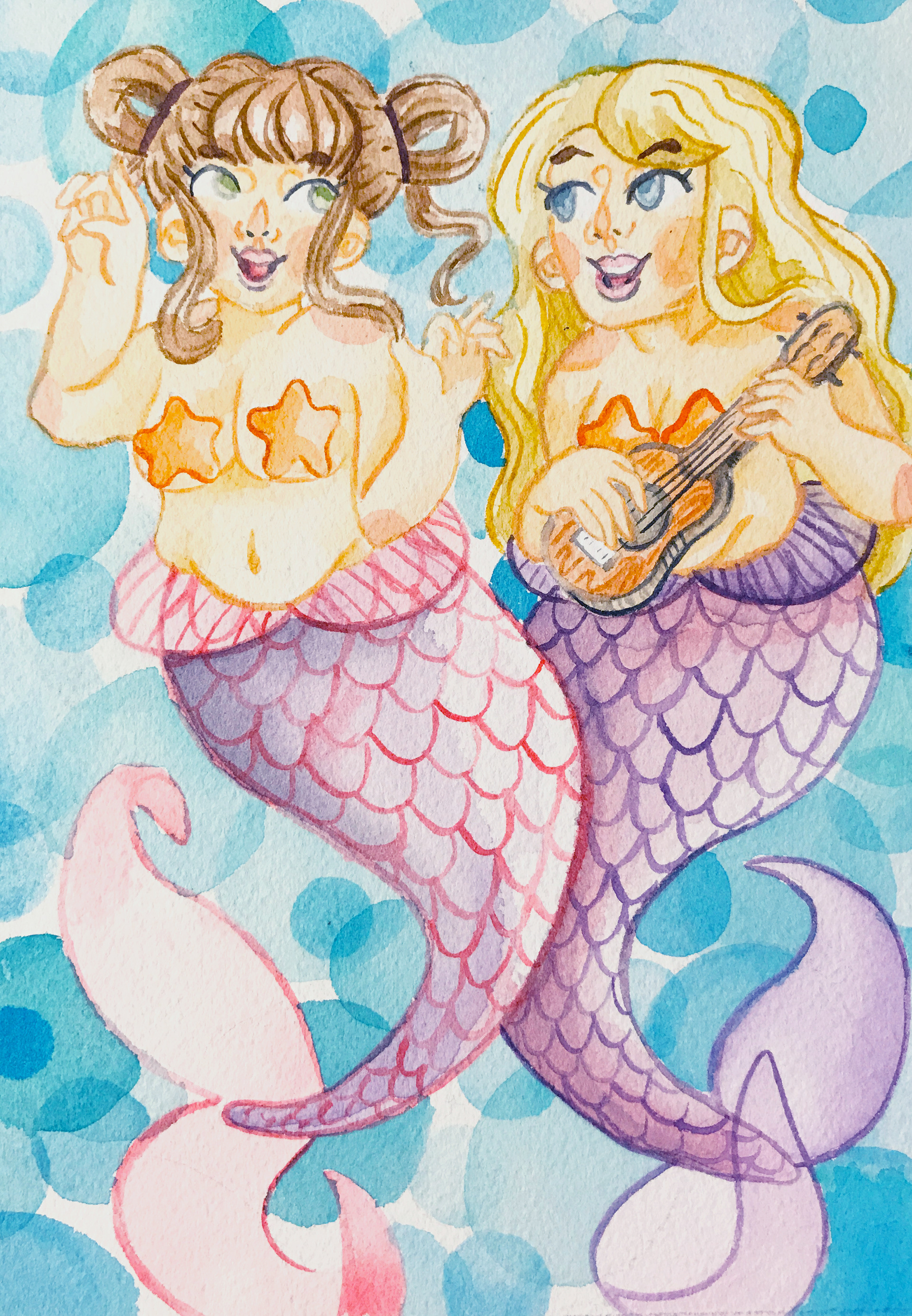 Some friendly mer-girls having some musical fun.